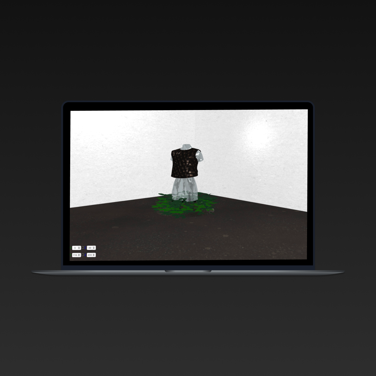 The digital installation will be a 3d model that the visitor can explore. It is animated to display ice melting causing the plants to grow while the vest remains unchanged.