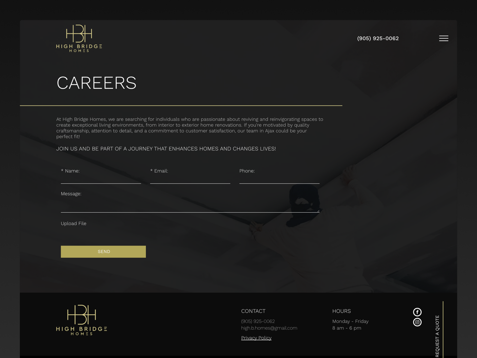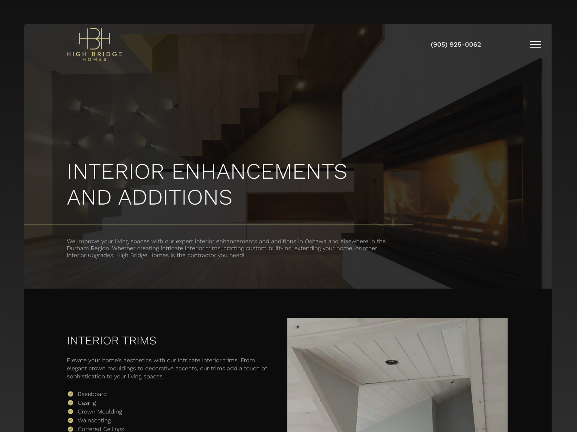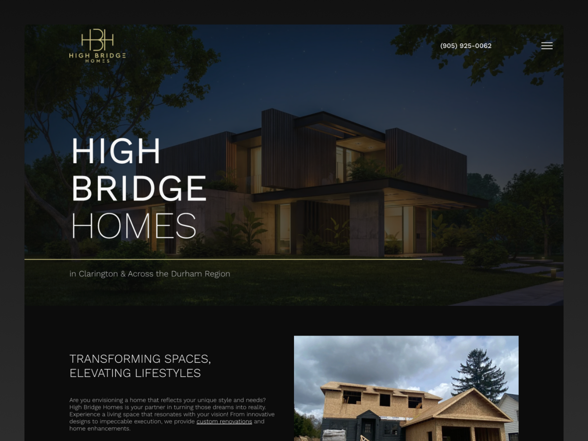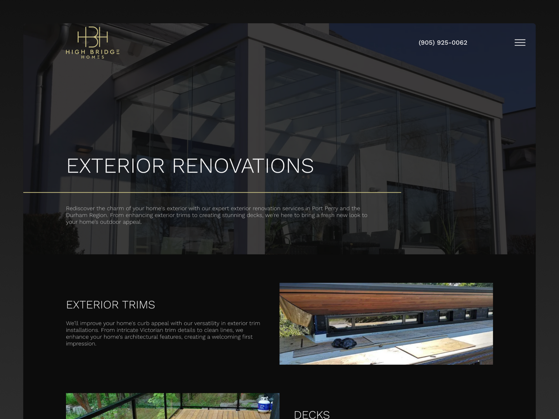 High Bridge Homes helps their customers transform their spaces and elevate their lifestyle. They sought a website with a clean, luxurious feel. Drawing inspiration from their logo, I delivered a professional design that emphasizes their craftsmanship in home renovations. Gold line accents guide users through the website, offering contrast to the otherwise dark theme. The design highlights their commitment to quality and reliability, with easy navigation across the service sections.